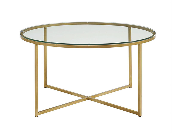 Rivet Modern Round Metal Coffee Table 18 5 H Gold And Glass